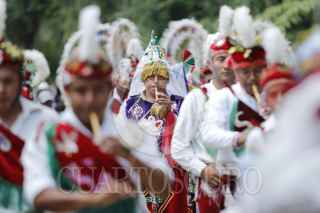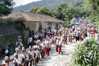 CUETZÁLAN, PUEBLA, 04AGOSTO2013.- Habitantes del municipio de Cuetzálan del Progreso, ubicado en la sierra norte de Puebla, participaron en el tradicional festival de baile y danza "Kampa Yohualichan", que se llevó a cabo del 2 al 4 de agosto en la zona arqueológica del lugar. FOTO: HILDA RÍOS/ CUARTOSCURO.COM