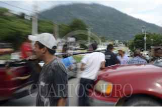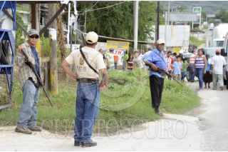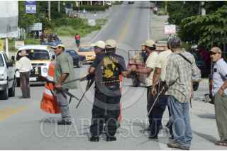 JUAN ESCUDERO TIERRA COLORADA, GUERRERO, 06AGOSTO2013.- Cientos de pobladores e integrantes del Sistema de Seguridad y Justicia Ciudadana (SSJC) bloquearon los puntos de acceso a las carreteras estatales que conectan a los municipios de Tierra Colorada y San Marcos; Tecoanapa y Ayutla de los Libres, ubicados en la región de Costa Chica, Guerrero. Con el bloqueo impidieron la salida de al menos 100 elementos del Ejército Mexicano. Todo inició cuando un grupo de efectivos castrenses detuvieron por la mañana a un comandante de la policía comunitaria perteneciente a la "Unión de Pueblos y Organizaciones del Estado de Guerrero". FOTO: BERNANDINO HERNÁNDEZ /CUARTOSCURO.COM