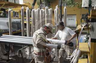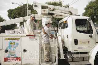 MÉXICO, D.F., 06AGOSTO2013.- Colonos y trabajadores encargados del alumbrado público en la delegación Venustiano Carranza, dieron el banderazo de salida del "Programa de Mejoramiento de Alumbrado Público y Servicios Urbanos" en el Jardín Obrero. El objetivo es garantizar el alumbrado en todas las colonias de la delegación. Asistió el jefe delegacional de Venustiano Carranza, Manuel Balllesteros López, quien fue el encargado de la inauguración. Se estima que 46 colonias de la demarcación serán beneficiadas. FOTO: ALEJANDRO NEYRA /CUARTOSCURO.COM