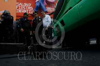 MÉXICO, D.F. 06AGOSTO2013.- Leugo de implementar el operativo Pasajero Seguro, en colaboración con la Secretaría de Seguridad Pública capitalina y la Procuraduría General de Justicia del DF, así como el Instituto de Verificación Administrativa (Invea) en el cruce de Periférico y Barranca del Muerto, varios operadores de camiones decidieron cerrar Barranca del Muerto, luego de que fueran detenidos dos de sus unidades por falta de documentación. Al lugar llegaron granaderos para levantar las unidades multadas. FOTO: JUAN PABLO ZAMORA /CUARTOSCURO.COM