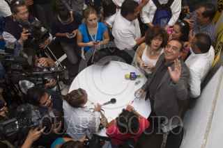MÉXICO, D.F., 07AGOSTO2013.- Pablo Abner Salazar Mendiguchia, exgobernador de Chiapas, quien estuviera preso por más de un año se afilió hoy al Partido de la Revolución Democrática (PRD) tras 14 años de lo que denominó "un ayuno partidista". Durante el proceso de afiliación, el exmandatario chiapaneco fue registrado erroneamente como originario de la Delegación Coyoacán en el D.F., después de la conferencia de prensa fué rectificada la credencial de afiliación del Sol Azteca. Fué acompañado por Gilberto Ensástiga, exdelegado en Tláhuac, y Carlos Sotelo, precandidato a la dirigencia nacional del PRD. FOTO: JUAN PABLO ZAMORA /CUARTOSCURO.COM