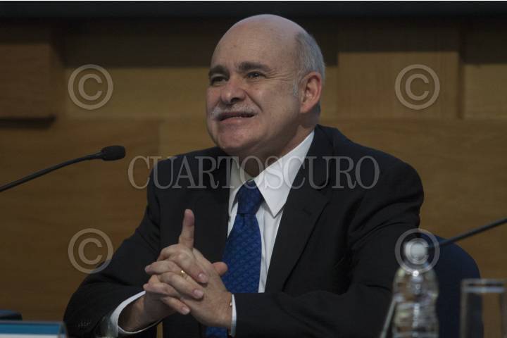 MÉXICO D.F., 09AGOSTO2013.- Eduardo Sojo Garza-Aldape, presidente del Comité de Evaluación y del Instituto Nacional de Estadística y Geografía y Agustín Carstens, Gobernador del Banco de México, durante la presentación de la lista de aspirantes a comisionados del Instituto Federal de Telecomunicaciones y la Comisión Federal de Competencia Económica, que obtuvieron las calificaciones aprobatorias más altas, en la sede del Banco de México. FOTO: MOISÉS PABLO /CUARTOSCURO.COM