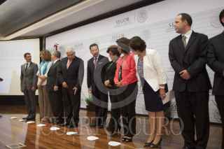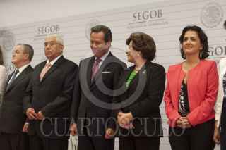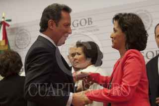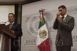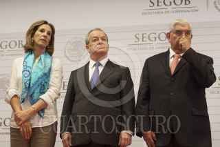 MÉXICO D.F., 09AGOSTO2013.- Eduardo Sánchez, Subsecretario de Normatividad de Medios de Segob y Edna Jaime Treviño, directora de México Evalúa, al finalizar la conferencia de prensa en donde se dió a conocer un nuevo formato para la difusión de información de incidencia delictiva, con esto se contabilizará todos los homicidios dolosos que se suscitan en el país, con este nuevo método se pretende tener una cifra más precisa en torno a los asesinatos violentos. FOTO: MOISÉS PABLO /CUARTOSCURO.COM