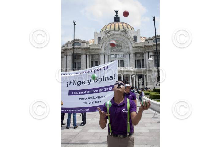 MÉXICO, D.F. 10AGOSTO2013.- Diana Talavera Flores, presidenta del Instituto Electoral del DF encabezó una brigada de volanteo para informar a la gente e invitarlos a que elige y opina en la consulta ciudadana para el presupuesto participativo a realizarse el 1 de septiembre de 2013, partieron del Hemiciclo a Juárez rumbo al Zócalo. FOTO: MOISÉS PABLO /CUARTOSCURO.COM