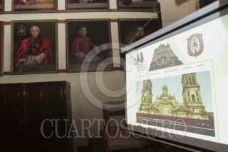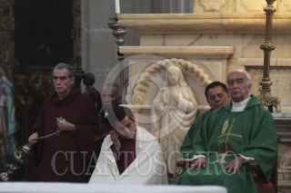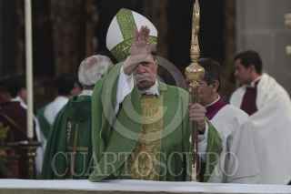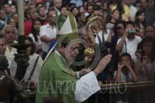 MÉXICO, D.F., 11AGOSTO2013.- El cardenal Norberto Rivera, ofició misa hoy en la catedral Metropolitana, donde la final se comunicó el programa para celebrar el 200 aniversario de la culminación de ese templo católico realizado por Manuel Tolsá. También la catedral, a través de su vocero, Hugo Valdemar, anunció la puesta en marcha de su página de Internet, con lo que se colocan, consideran ellos, a la vanguardia religiosa, ya que se puede mirar y escuchar diveros eventos religiosos en tiempo real. FOTO: JUAN PABLO ZAMORA /CUARTOSCURO.COM