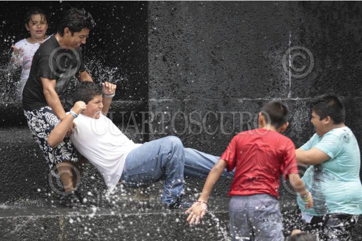 MÉXICO, D.F., 11AGOSTO2013.- Niños se divierten en las fuentes del Monumento a la Revolución. FOTO: IVAN STEPHENS /CUARTOSCURO.COM