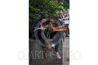 MÉXICO, D.F., 12AGOSTO2013.- Dos chicas sentadas en una jardinera de la calle Gante del Centro Histórico se ayudan para elaborar un par de solicitudes de empleo. Hoy se celebra el Día Internacional de la Juventud y la falta de trabajo entre jóvenes de 15 a 29 años resulta crítica. Cerca de 5 por ciento de ellos conforman la tasa de desocupación en México y un 60% son jóvenes egresados de la educación media y superior que desempeñan, de acuerdo con la 1ra Encuesta Iberoamericana de Juventudes, actividades no profesionales. FOTO: DIEGO SIMÓN SÁNCHEZ /CUARTOSCURO.COM