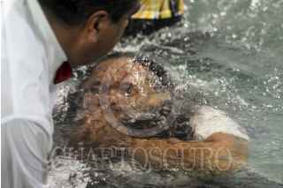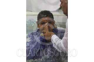 GUADALAJARA, JALISCO, 12AGOSTO2013.-Fieles pertenecientes a la congregación de la Luz del Mundo fueron bautizados en la Iglesia del Bethel, una de las sedes donde se lleva a cabo el ritual que dura aproximadamente una hora es considerada su máxima celebración anual: "La Santa Convocación" que congrega a miles de fervientes de esta Iglesia. FOTO: FERNANDO CARRANZA GARCIA /CUARTOSCURO.COM