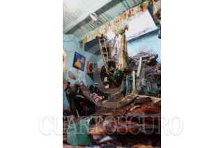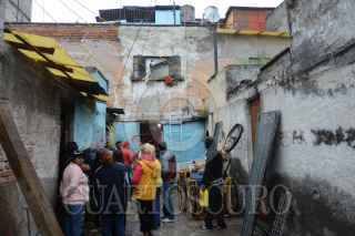 MÉXICO D.F. 12AGOSTO2013.- Parte del techo de un departamento de una vecindada ubicada en la esquina de Sastreria y Herreros de la colonia Morelos, se derrumbo a causa del reblandecimiento del adobe, material con el que fue construida esta obra hace casi un siglo. Del siniestro no se registraron personas lesionadas. Al lugar acudieron bomberos y personal de Protección Civil para valorar los daños y checar si el resto de los departamentos pueden seguir siendo habitados. FOTO: LUIS CARBAYO /CUARTOSCURO.COM