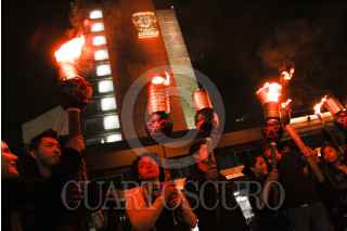 MÉXICO, D.F., 12AGOSTO2013.- Jóvenes congregados en el Movimiento de Aspirantes Excluidos de la Educación Superior MAES, marcharon de manera atipica, cuando se dirigieron llevando antorchas de la Universidad Pedagogica Nacional UPN-Plantel Ajusco a rectoría de Ciudad Universitaria, para exigir mayores lugares para poder estudiar en las universidades del país. FOTO: ADOLFO VLADIMIR /CUARTOSCURO.COM
