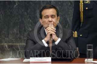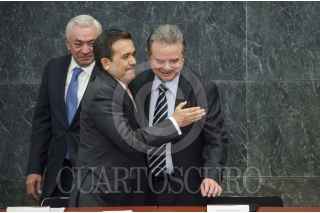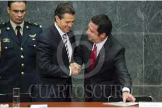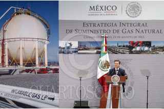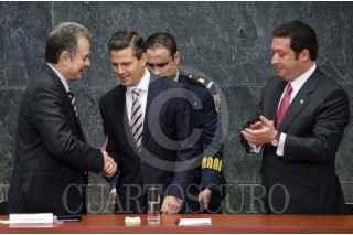 MÉXICO, D.F., 13AGOSTO2013.- Enrique Peña Nieto, presidente de México; encabezó la presentación de la Estratégia Integral de Suministro de Gas Natural. El presidente fue acompañado por el secretario de Energía Pedro Joaquín Coldwell; Ildefonso Guajardo, secretario de Economía; Emilio Lozoya Austin, director de Petroleos Mexicanos (Pemex); así como los presidentes de las comisiones de energía en el Senado y Cámara de Diputados; David Penchyna y Marco Antonio Bernal, respectivamente. El evento tuvo lugar en el salón Adolfo López Mateos de la Residencia Oficial de Los Pinos. FOTO: EMILIANO RUVAL / CUARTOSCURO.COM
