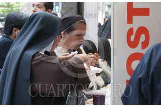 MÉXICO, D.F., 14AGOSTO2013.- Una pareja de monjas se alimentan con unas tostadas en un puesto de comida del Centro Histórico. FOTO: DIEGO SIMÓN SÁNCHEZ /CUARTOSCURO.COM