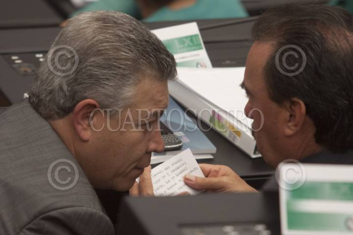 MÉXICO, D.F., 14AGOSTO2013.- Luis Alberto Villareal, coordinador de los diputados federales del PAN, Ricardo Monreal, coordinador de los diputado federales de Movimiento Ciudadano y Armando Ríos Piter, senador del PRD, en charla durante la sesión de la Comisión Permanente en donde se aprobó dos periodos extraordinarios. FOTO: MOISÉS PABLO /CUARTOSCURO.COM