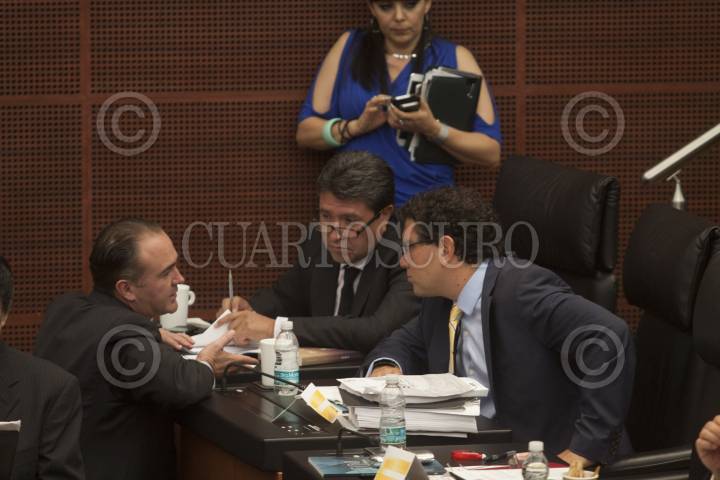 MÉXICO, D.F., 14AGOSTO2013.- Luis Alberto Villareal, coordinador de los diputados federales del PAN, Ricardo Monreal, coordinador de los diputado federales de Movimiento Ciudadano y Armando Ríos Piter, senador del PRD, en charla durante la sesión de la Comisión Permanente en donde se aprobó dos periodos extraordinarios. FOTO: MOISÉS PABLO /CUARTOSCURO.COM