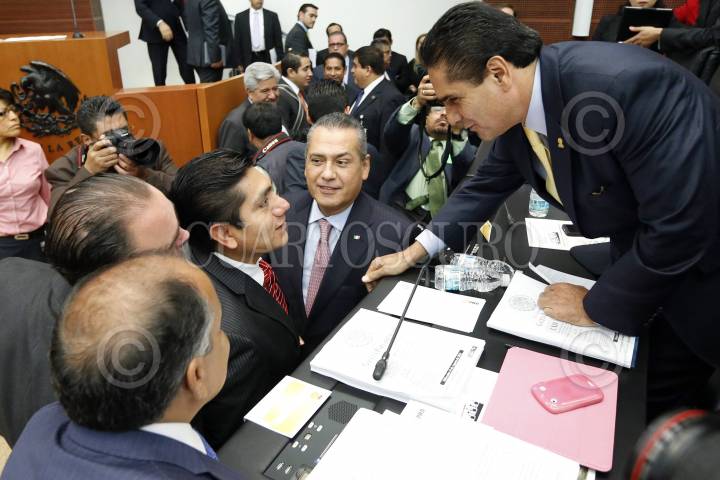 MÉXICO, D.F., 14AGOSTO2013.- Manuel Añorve, diputado federal del PRI, Luis Alberto Villareal, coordinador de los diputados federales del PAN, Jorge Luis Preciado, coordinador de los senadores dela PAN, Manlio Fabio Beltrones, coordinador de los diputados federales del PRI y Silvano Aureoles Conejo, coordinador de los diputados federales del PRD, durante la sesión de la Comisión Permanente en donde se aprobó dos periodos extraordinarios. FOTO: CUARTOSCURO.COM