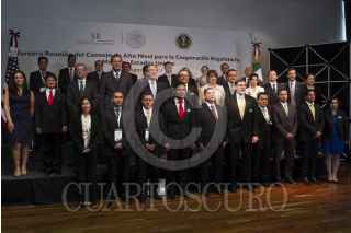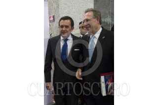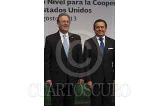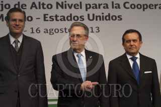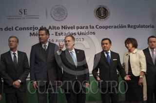 MÉXICO D.F., 15AGOSTO2013.- Ildefonso Guajardo, titular de la Secretaría de Economía y Anthony Wayne, embajador de Estados Unidos, durante la ceremonia inaugural de la 3ª Reunión del Consejo de Alto Nivel para la Cooperación Regulatoria entre México y Estados Unidos, en la Secretaría de Economía. FOTO: GUILLERMO PEREA /CUARTOSCURO.COM