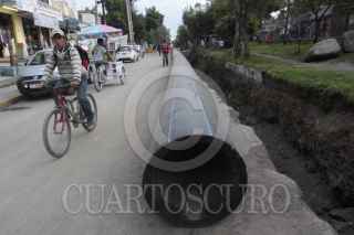 MÉXICO, D.F., 15AGOSTO2013.- Habitantes del Pueblo Santa Cruz Acalpixca mantienen un plantón sobre Avenida México debido a que se oponen a la realización de una obra hidráulica, pues suponen que llevará agua potable a otra región mientras que a la comunidad se le racionaliza el vital líquido a través del tandeo. Por su parte, autoridades de la Delegación aseguran que la obra es para aumentar la capacidad de desagüe. FOTO: IVÁN STEPHENS /CUARTOSCURO.COM
