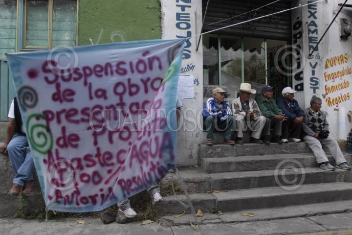 MÉXICO, D.F., 15AGOSTO2013.- Habitantes del Pueblo Santa Cruz Acalpixca mantienen un plantón sobre Avenida México debido a que se oponen a la realización de una obra hidráulica, pues suponen que llevará agua potable a otra región mientras que a la comunidad se le racionaliza el vital líquido a través del tandeo. Por su parte, autoridades de la Delegación aseguran que la obra es para aumentar la capacidad de desagüe. FOTO: IVÁN STEPHENS /CUARTOSCURO.COM