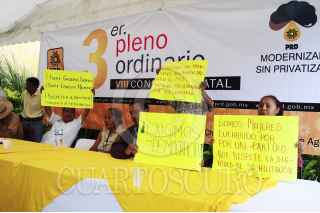 CHILPANCINGO, GUERRERO,19AGOSTO2013.- El día de ayer perredistas del Puerto de Acapulco, irrumpieron el tercer Pleno Ordinario del PRD y el octavo Consejo Estatal, en un conocido restaurante de Chilpancingo. Consigo traían pancartas que exigían la salida de Gregorio Calderón y de Ernesto Mastache, y acusaban al Secretario General del comité del PRD estatal, Evodio Velázquez Aguirre, de imponerlos. Ante la falta de condiciones suspendieron la sesión y la programaron para dentro de 15 días. FOTO: JOSÉ I HERNÁNDEZ / CUARTOSCURO.COM