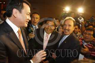 MÉXICO, D.F., 19AGOSTO2013.- Miguel Ángel Osorio Chong, secretario de Gobernación, Luis Miguel Gerónimo Barbosa, líder del PRD en la Cámara Alta, y Emilio Gamboa Patrón, coordinador del PRI en el Senado, en la 3ª Reunión Plenaria de los Senadores del PRD. FOTO: IVÁN MÉNDEZ / CUARTOSCURO.COM