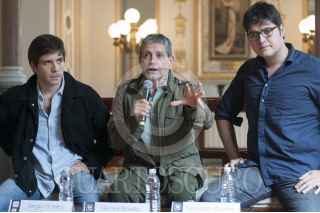MÉXICO, D.F. 20AGOSTO2013.- El actor Héctor Bonilla junto a sus hijos Sergio y Fernando, ofrecieron una conferencia de prensa para hablar sobre la obra de teatro "Almacenados", que se presentará en el Teatro de la Ciudad Esperanza Iris el próximo mes de septiembre. FOTO: DIEGO SIMÓN SÁNCHEZ /CUARTOSCURO.COM