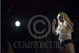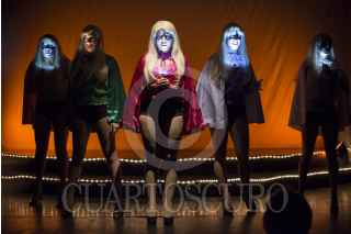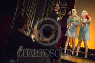 MÉXICO, D.F., 20AGOSTO2013.- Como parte del Festival Internacional de Cabaret de la Ciudad de México 2013, se presentó en el teatro-bar El Vicio la obra Mujeres en el aire. Con la dirección de Ana Francis Mor, la historia se desarrolla en un set de filmación y muestra a un grupo de mujeres dispuestas a todo con tal de permanecer activas en el show business. Es una reflexión del mundo estético de cirugías y dietas. Un imperio light que produce y reproduce imágenes de plástico. FOTO: ADOLFO VLADIMIR /CUARTOSCURO.COM