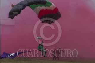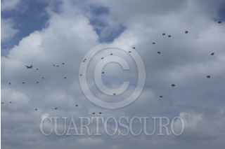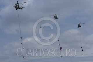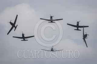 TECAMAC, ESTADO DE MÉXICO, 19AGOSTO2013.- Como parte del 3er Espectáculo Aéreo, “Fuerzas Armadas, Pasión por servir a México”, que se realizara el sábado en la Base aérea de Santa Lucia, se realizó un ensayo general con las aeronaves que estarán realizando acrobacias así como las que se ubicaran en tierra para que la gente las observe. FOTO: ENRIQUE ORDÓÑEZ /CUARTOSCURO.COM