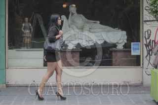 MÉXICO D.F., 20AGOSTO2013.-Una joven camina frente a una tienda de esculturas en la avenida Insurgentes, durante el bloqueo que maestros de la CNTE realizaron en el cruce de esa avenida con Paseo de la Reforma-. FOTO: JUAN PABLO ZAMORA /CUARTOSCURO.COM