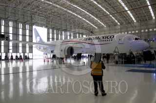 MÉXICO D.F., 21AGOSTO2013.- Andrés Conesa, Director General del Grupo Aeroméxico, encabezo la presentación de el Boeing 787-Dreamliner de Aereoméxico que iniciara operaciones a partir del 14 de octubre operará las tres frecuencias semanales entre la Ciudad de México y Tokio, Japón. FOTO: GUILLERMO PEREA /CUARTOSCURO.COM