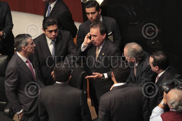 MÉXICO, D.F., 21AGOSTO2013.-Diputados del PRI, PAN, PVEM, y Nueva Alianza llegaron a la Cámara Alta, debido al bloqueo que profesores mantienen en el Palacio Legislativo de San Lázaro. Junto con senadores, los diputados realizaron la apertura del periodo extraordinario de sesiones en la sede del Senado, cuando habitualmente la ceremonia se lleva a cabo en la Cámara de Diputados. La sesión del Congreso General duró menos de 10 minutos. Al término de la ceremonia, los diputados empezaron a trasladarse a otra sede, donde se prevé que discutan y voten las leyes secundarias de la reforma educativa, a la que se oponen docentes de la Coordinadora Nacional de Trabajadores de la Educación (CNTE) porque consideran que afecta sus derechos laborales. FOTO: JUAN PABLO ZAMORA /CUARTOSCURO.COM