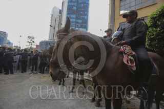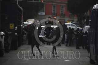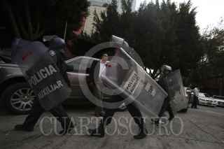 MÉXICO, D.F., 21AGOSTO2013.- Aspectos de seguridad a las afueras de la Cámara de Senadores en donde se instaló la sesión de Congreso General, ésto ante la imposibilidad de instalarla en San Lázaro por el cerco que instalaron desde la madrugada en el recinto legislativo, los diputados sesionarán en el Centro Banamex. FOTO: BERENICE FREGOSO /CUARTOSCURO.COM