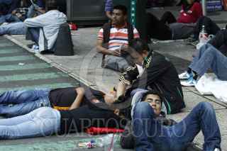 MÉXICO, D.F., 22AGOSTO2013.- Maestros de la Coordinadora Nacional de Trabajadores de la Educación duermen para pasar el rato durante el planton que mantienen en las inmediaciones del Senado de la República en donde no dejaron ingresar a ninguna persona por lo que los senadores tuvieron que moverse a sesionar a una sede alterna. FOTO: RODOLFO ANGULO /CUARTOSCURO.COM