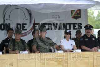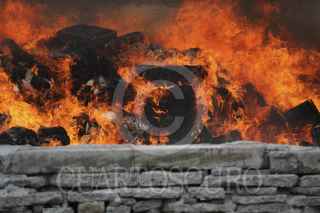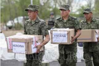 ESCOBEDO, NUEVO LEÓN, 23AGOSTO2013.- La Procuraduría General de la República del estado con apoyo de la policía federal, ministerial y Ejército mexicano insineraron siete toneladas con 796 kilos de narcóticos diversos como marihuana, pastillas de metanfetamina, pastillas psicotrópicas, cocaína, heroína, entre otras. La quema de los enervantes fue llevada a cabo en la 7ma. zona militar en donde contó con la presencia de autoridades de la PGR y de la SEDENA. FOTO: GABRIELA PÉREZ MONTIEL / CUARTOSCURO.COM