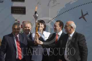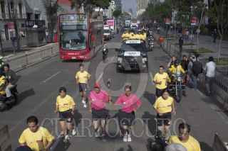 MÉXICO, D.F., 24AGOSTO2013.- La joven corredora Melissa Alcala participó en uno de los relevos durante la trayectoria del recorrido de la antorcha que partió rumbo al estado Olímpico de CU, esto como parte de las actividades previas de la celebración el día mañana del Maratón de la Ciudad de México, el cual partirá de avenida a Juárez. FOTO: MOISÉS PABLO /CUARTOSCURO.COM