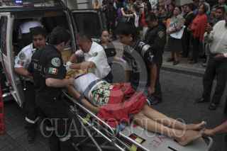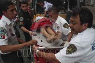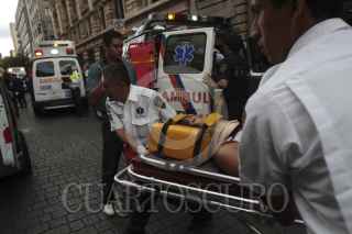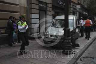 MÉXICO, D.F., 25AGOSTO2013.-El vehículo marca Renault con placas 139WFM impactó su curso en uno de los postes de alumbrado público, durante el percance fueron arrolladas 5 personas, entre ellas dos turistas de orígen Italiano, que fueron trasladados al hospital Londres. Según paramédicos y policias de tránsito, el chofer se quedó dormido ocasionando el impacto. FOTO: JUAN PABLO ZAMORA /CUARTOSCURO.COM