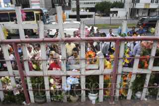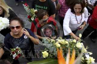 MONTERREY, NUEVO LEÓN, 25AGOSTO2013.- Al cumplirse dos años de la tragedia del Casino Royale, familiares de las víctimas, acudieron a una misa en honor a los fallecidos. Posteriormente se reunieron afuera del Centro de Apuestas para colocar flores y veladoras. FOTO: GABRIELA PÉREZ MONTIEL / CUARTOSCURO.COM