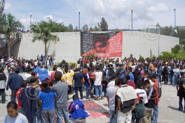 CHILPANCINGO,GUERRERO.-03OCTUBRE2005.- Egresados de la normal rural de Ayotzinapa, durante su protesta que realizaron afuera del Congreso local en Chilpancingo, donde se instalaron en plantón indefinido para exigir la entrega de plazas automáticas. Foto: Oscar Alvarado/CUARTOSCURO.COM