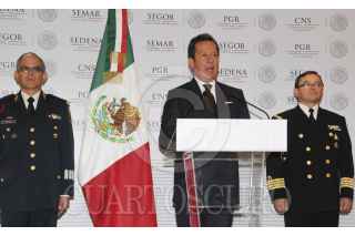 MORELIA, MICHOACÁN, 26AGOSTO2013.- Eduardo Sánchez Eduardo, Subsecretario de Normatividad de Medios de la Secretaría de Gobernación y Vocero del Gabinete de Seguridad del Gobierno de la República, ofreció una conferencia en donde informó que el pasado 20 de agosto de 2013 “efectivos del Ejército Mexicano, en coordinación con elementos de la Procuraduría General de la República, capturaron a Gregorio Abeja Linares, en un fraccionamiento residencial en la Ciudad de Morelia”, quien ya se encuentra en la Prisión Federal de Puente Grande, Jalisco. “El Abeja” es considerado uno de los principales responsables de la violencia que se vive actualmente en el estado y está vinculado con actos de secuestro, homicidio, delincuencia organizada y delitos contra la salud. Es sospechoso además de pertenecer a una banda delictiva en Tierra Caliente, Guerrero. FOTO: CUARTOSCURO.COM
