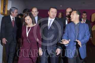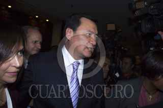 MÉXICO, D.F., 26AGOSTO2013.- Los senadores priistas, Cristina Díaz Salazar, Teofilo Torres Corzo y Omar Fayat, acompañaron a Miguel Ángel Osorio Chong a su salida de la reunión Plenaria que tuvieron los senadores del PRI en un hotel de la zona de Polanco. FOTO: ENRIQUE ORDÓÑEZ /CUARTOSCURO.COM
