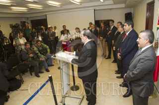 MÉXICO, D.F., 26AGOSTO2013.-Rodolfo Ríos Garza, Procurador Capitalino, ofreció una conferencia de prensa para anunciar la captura de una persona más, que participó en los hechos del bar Heaven. Según el procurador, las declaraciones de esta persona condujeron a la ubicación de los cuerpos de los 12 jóvenes desaparecidos y, ahora se sabe, ejecutados en un rancho en Tlalmanalco, Estado de México. A la conferencia llegaron 3 familiares de los desaparecidos, a las que les sugirieron salirse de la sala; ellas se negaron a hacerlo quedandose en la conferencia del titular de esa dependencia. FOTO: JUAN PABLO ZAMORA /CUARTOSCURO.COM