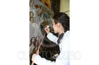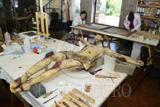 MÉXICO, D.F., 26AGOSTO2013.- Especialistas del Instituto Nacional de Antropología e Historia, realizaron labores de restauración de pinturas y piezas religiosas en el Museo del Carmen. FOTO: INAH /CUARTOSCURO.COM