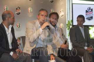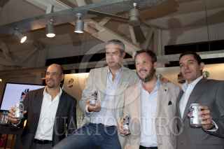 MÉXICO, D.F., 27AGOSTO2013.- Alejandro Villareal, alpinista, Marc Busain, DG de Cervecería Moctezuma, Leandro Berrone, VP Mktg de CM, y Max Skorow, gerente de mercadotecnia de Tecate, presentaron la cerveza Tecate Titanium en un restaurante de Polanco. FOTO: MOISÉS PABLO /CUARTOSCURO.COM