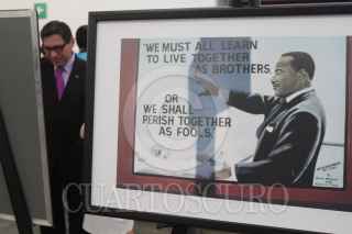 MÉXICO, D.F., 28AGOSTO2013.- La Comisión de Derechos Humanos del Distrito Federal (CDHDF) inaguró la galaería Martin Luther King, quien hace 50 años realizara una manifestación en contra de la discriminación y el racismo, en donde pronunció su histórico discurso "I have a dream". Luis González Plascencia, titular de la CDHDF, acompañado de la agregados culturales de la Embajada de Estados Unidos inaguraron el recinto dedicado a la cultura. FOTO: JUAN PABLO ZAMORA / CUARTOSCURO.COM