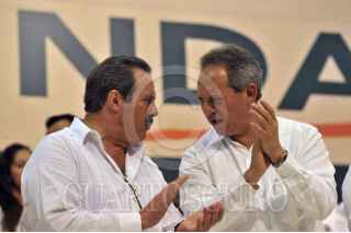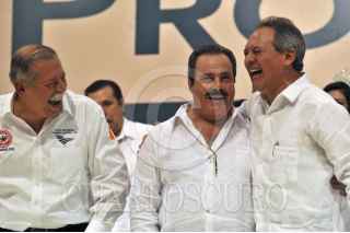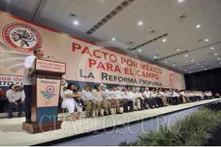 CIUDAD VICTORIA, TAMAULIPAS, 28AGOSTO2013.- Egidio Torre Cantú, gobernador del estado, Enrique Martínez, secretario de Agricultura y Gerardo Sánchez García, presidente de la Confederación Nacional Campesina (CNC), durante la clausura de las mesas de trabajo del congreso extraordinario de la Confederación Nacional Campesina "Pacto por México para el Campo. La Reforma Profunda". FOTO: CUARTOSCURO.COM