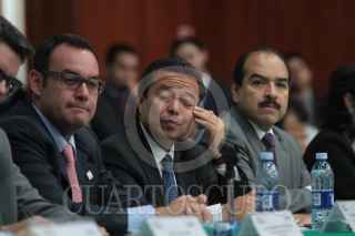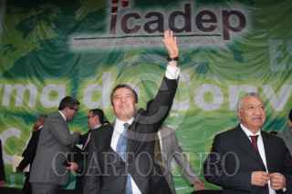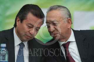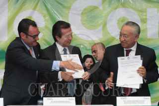 MÉXICO, D.F. 28AGOSTO2013.- César Camacho Quiroz, presidente nacional del PRI, durante la firma de acuerdo con la Confederación Revolucionaria de Obreros y Campesinos (CROC) para que ingresen sus afiliados al Instituto de Capacitación y Desarrollo Político (ICADEP). FOTO: JUAN PABLO ZAMORA /CUARTOSCURO.COM