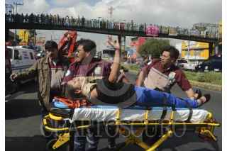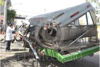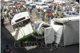 MÉXICO D.F. 29AGOSTO2013.- 25 personas resultaron lesionadas y una persona perdió la vida, fué el saldo de un choque entre un microbús de la ruta 31 contra un camión de 3 ½ toneladas. El conductor del microbús pierde el control por el exceso de velocidad con que conducía sobre Calzada Ignacio Zaragoza a la altura de J.C. Bonilla perímetro de Iztapalapa. FOTO: LUIS CARBAYO /CUARTOSCURO.COM