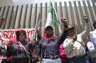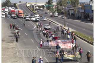 TEXCOCO, ESTADO DE MÉXCO, 29AGOSTO2013.- Integrantes del Frente de Pueblos en Defensa de la Tierra de San Salvador Atenco realizan una marcha desde el centro de Atenco hacia el penal Molino de Flores en Texcoco, para exigir la libertad de Rosa María Medina Moreno, acusada por el robo de un vehículo (ambulancia) en los hechos ocurridos del 3 y 4 de mayo del 2006. FOTO: CARLOS MARURI /CUARTOSCURO.COM