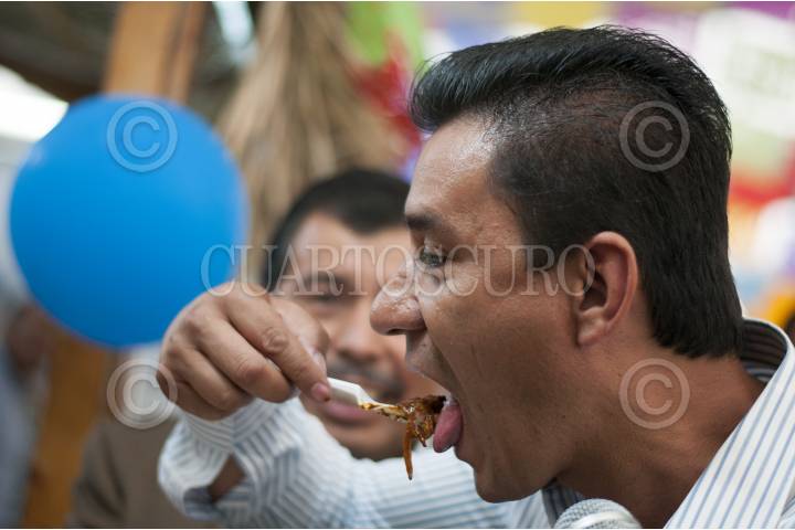 MÉXICO, D.F., 29AGOSTO201.- Una señora se alimenta con unas enchiladas que regalaron durante la Feria de la Enchilada en Iztapalapa. Cientos de personas asistieron a la explanada de la Delegación Iztapalapa para disfrutar del inicio del Festival Gastronómico de la Enchilada 2013. Durante el evento se partió la enchilada más grande del mundo. La Feria permanecerá hasta el 8 de septiembre y los asistentes podrán degustar todo tipo de enchiladas en más de 30 locales. FOTO: DIEGO SIMÓN SÁNCHEZ /CUARTOSCURO.COM