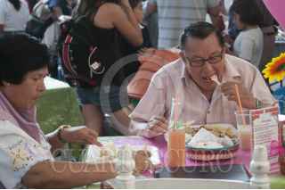 MÉXICO, D.F., 29AGOSTO201.- Una señora se alimenta con unas enchiladas que regalaron durante la Feria de la Enchilada en Iztapalapa. Cientos de personas asistieron a la explanada de la Delegación Iztapalapa para disfrutar del inicio del Festival Gastronómico de la Enchilada 2013. Durante el evento se partió la enchilada más grande del mundo. La Feria permanecerá hasta el 8 de septiembre y los asistentes podrán degustar todo tipo de enchiladas en más de 30 locales. FOTO: DIEGO SIMÓN SÁNCHEZ /CUARTOSCURO.COM