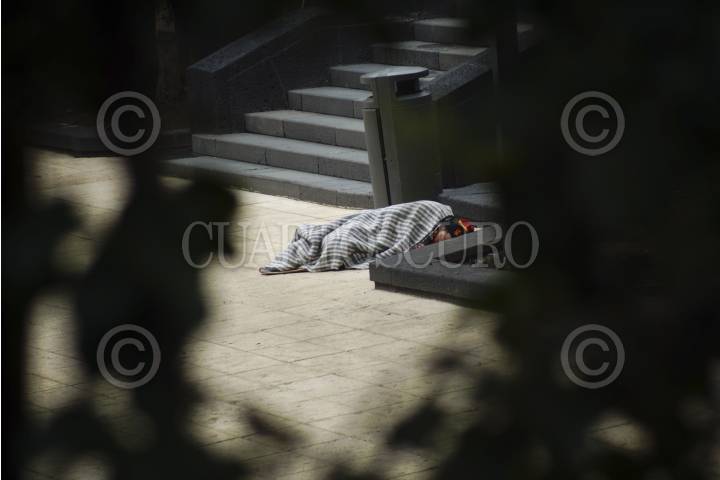 MÉXICO, D.F., 31AGOSTO2013.- Un hombre duerme en la explanada del monumento a la Revolución. FOTO: PEDRO VALTIERRA ANZA /CUARTOSCURO.COM